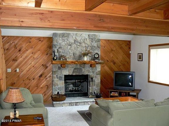 Lovely mountain getaway home in The Hideout, a four season recreational community just 2.5 hours to Metro NYC. The chalet style home features 4 bedrooms, 3 full baths, open plan living/ dining with soaring cathedral ceiling and wood accented stone fireplace. Sitting pretty on a level property just a short walk to Deerfield Lake. Motorboating, golf, skiing, tennis and more are available within the confines of this gated community. Asking $168000