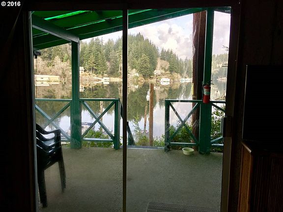 17859 sq.ft lot!Vintage lakefront cabin.Superb location surrounded by top dollar homes. 5 min from the County Ramp, restaurants & town. You will love the seclusion while enjoying your time in the forest hiking, boating on the lake & fishing from your own private dock! Perfecty decorated turn key fishing cabin on Oregon's best lake, near Oregon's longest beach & largest sand dunes. Covered wrap around deck for year around outdoor enjoyment.