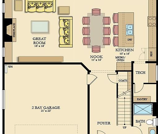 Larwood Floorplan -Open floorplan. Lrg kitchen w/ granite, fullb acksplash, crown molding and brushed nickel handles. Tech Hub. Loft. Large Master Suite with Moen plumbing/fixtures, dual-vanity sinks, soaking tub with separate shower, private water closet. A/C, 95% furnace, tankless water heater.Fireplace, 9" ceilings on 1st floor, dual-glazed high-efficiency windows with blinds included. Pictures/Virtual Tour of a model home. Models at Happy Valley 15114 Se Baden Powell Rd Happy Valley OR 97086