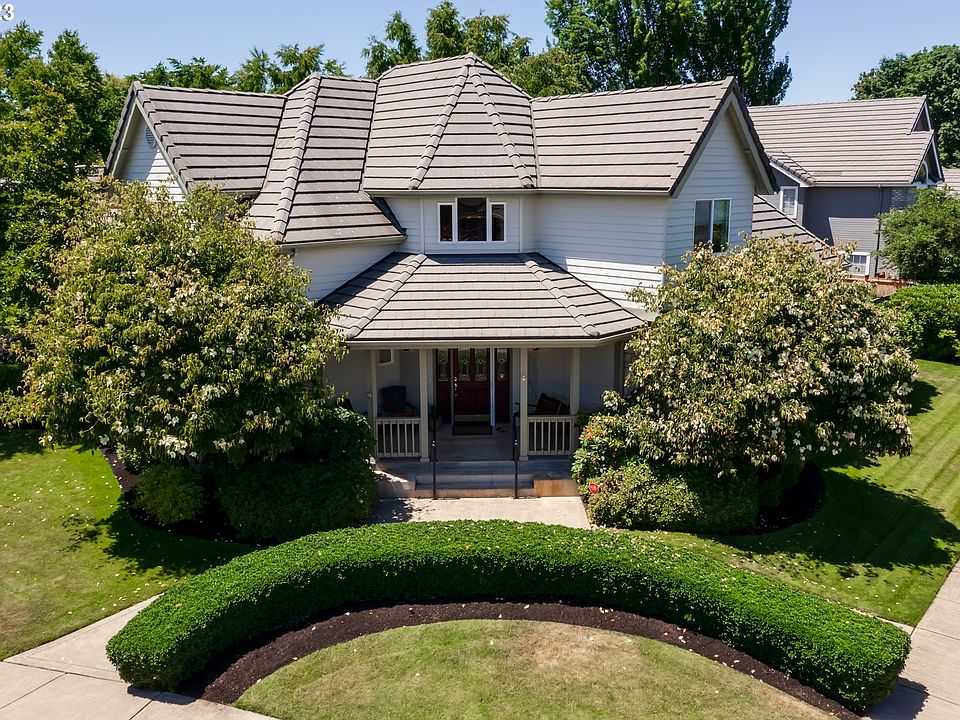 Lovely contemporary on a corner lot in desirable River Glen! A charming covered porch, complete with a porch swing, welcome you to this wonderful home. An entry with soaring ceilings ushers you inside. The spacious living room boasts high ceilings, a gas fireplace, and built-in cabinetry. The roomy kitchen provides a island with a gas cooktop, granite counters, and ample prep & storage space. Conveniently located on the main level, the primary bedroom suite offers a generously-sized walk-in closet, jetted tub and a walk-in shower. Large family/bonus room upstairs. 4th bedroom/office space with closet on main level. Formal dining room with built-ins, plus separate eating area adjacent to the kitchen. Relax on the deck while listening to the soothing sounds of your own water feature. Magnificently maintained backyard with mature landscaping, new fencing, a variety of roses, raised garden beds, and a garden shed. Deck also has a BBQ hookup for grilling. Three-car garage, as well as gated RV parking. New gas water heater, new gas furnace & central air conditioning, air cleaner & more. It's a great place to call home!