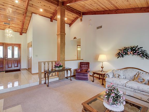 Large Western Oak home sitting on a manicured .63 Acre lot. 3 car oversized garage with built in cabinets and huge RV parking. Custom home with separate living and family rooms with centrally located gas-log fireplace. Cultured marble entry and hearth. Large kitchen and walk in pantry. Beautiful vaulted and exposed beam ceilings. House has been meticulously maintained and cared for. Large spare bedrooms with built in desks and spacious main bedroom and ensuite bathroom. Laundry room and half bath. Beautiful landscaping front and back.