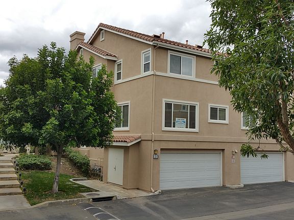 GREAT STEVENSON RANCH LOCATION! A must see for those looking for a home with great sunlight, privacy and open floor plan. Kitchen has maple cabinets, black granite counters, and stainless appliances. The kitchen is open to a large den area. Slate stone patio with room for table and chairs. This end unit split level town house is located in The Palisades complex. All bedrooms are upstairs. The 2 guest bedrooms share a Jack & Jill bathroom. The master bedroom suite is huge with a walk in closet. There is an attached 2 car garage and a patio. You will have the convenience of the Pool area just steps away. Tons of guest parking!! Washer & dryer hookup in garage. Close proximately to schools and shopping.