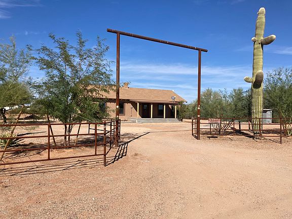 ''MORRISTOWN'' here we come ,very nice 1200 sq. ft. site-built home on an acre plus. Continuous pipe fencing, large turn out and pens with auto waterer. Located on paved road for easy commute to Surprise/Wickenburg across Hwy74 to Lake Pleasant and Cave Creek, Carefree area. New cement walk-way and covered patio ,soon to be completed. Team Roper deluxe come see.