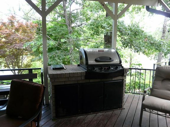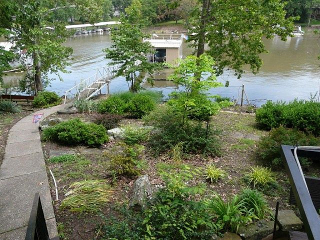 Grove Waterfront Home in wide protected 25' or deeper cove with main lake views at dock. Outdoor living like you have never seen-deck w/seating for 30+ people, built in Coleman grill on deck, beautiful waterfall feature, entire back yard is just stunning landscape, no grass to mow. 10 yr old dock with upper sundeck, 30' slip,8000# lift included, encapsulated foam. 3-4 bedrooms,2 baths,large lving,