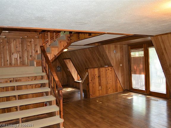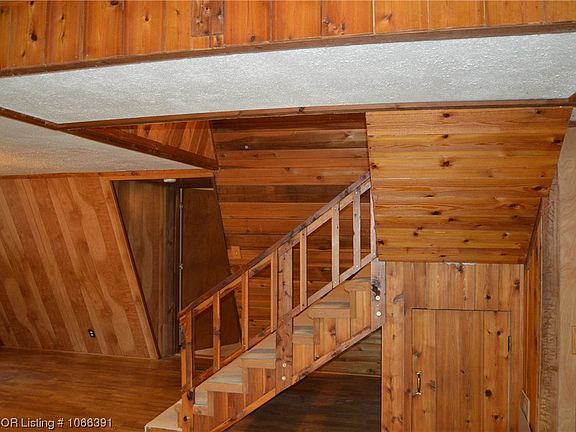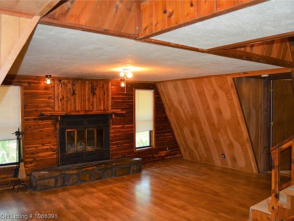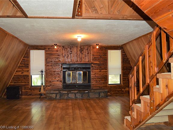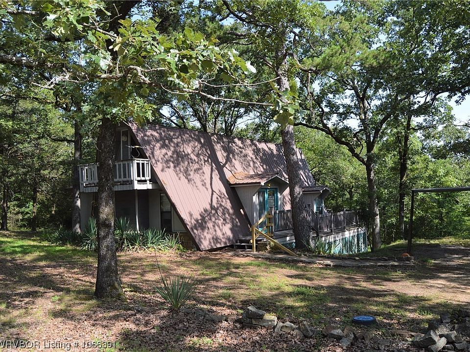 Unique property minutes from Lake Wister. Perfect for full time living or a weekend get away. The home sits on 2.15 acres. It has a metal roof with decks & balconies on three sides-lots of potential to enjoy the great outdoors! The main floor offers a spacious living room with a great stone wood burning fireplace as the focal point. It is open to the dining area & kitchen. All kitchen appliances included in the sale. There is a full bathroom off the kitchen. In addition, the primary suite is also on the main floor. It has two closets, a sitting area, which would make a great home office plus a full bath with a solid surface shower. Upstairs are two bedrooms each with a small balcony. There is also walk out basement for storage and storm shelter. A storage building & carport complete the listing. In less than 10 minutes you can be on the lake. In less than 30 minutes you will find yourself in the beautiful Ouachita National Forest.