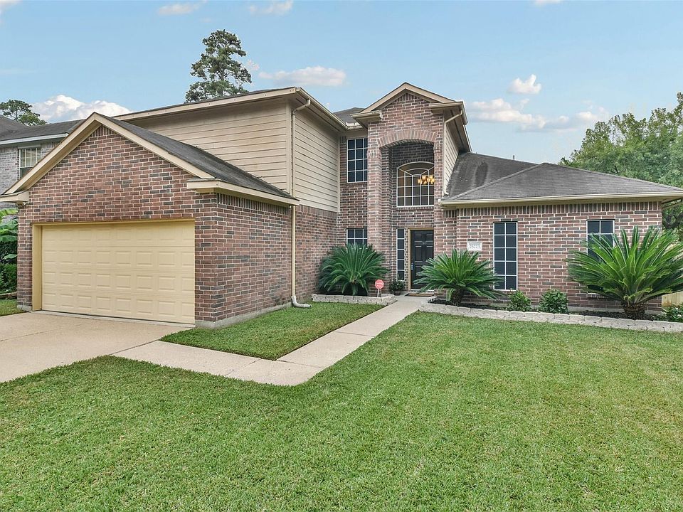YOUR COMMUTE HAS NEVER BEEN SIMPLER! Minutes from I45, Hardy Tool Road, and 99! An 18ft entryway with a gorgeous chandelier welcomes you to this home. Family room, casual dining and kitchen space flows easily from one room to the next and offer great 9ft ceilings. Flex space is perfectly located for formal dining, home office or virtual learning space. Remodeled in 2020, the kitchen offers generous food preparation and storage spaces. Updates included new shaker style soft close cabinets, marble counter tops, marble back splash and stainless steel appliances. Primary bedroom is located on the 1st floor and is a welcoming space to relax and unwind. The ensuite bath is HUGE and offers his and hers closets! Upstairs you will find a MASSIVE game-room and 3 large bedrooms all perfect for sleep or play. Dream backyard with extended patio area for dining alfresco or simply recharging after a busy day and POOL/SPA with waterfall to keep you cool on our hot TX days. Zoned to Conroe ISD!