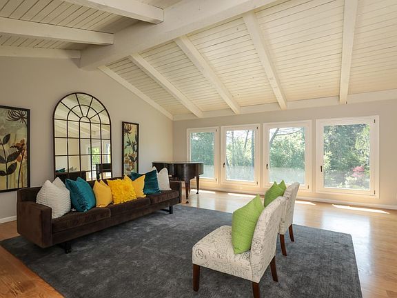 Nestled in the hills of Los Altos, this unbelievable contemporary family home accommodates both stylish entertaining and relaxed family living. Comfortable eat-in kitchen w/professional appliances including 6-burner gas cooktop, SubZero refrigerator, trash compactor & double oven. Oversized master sanctuary w/walk in closet including custom built-ins, & sumptuous master bath. Separate DR & LR w/soaring open beamed ceilings & floor to ceiling windows providing views of the rolling hills. Expansive FR w/ fireplace leading to the relaxing pool perfect for entertaining & outdoor gatherings. Spectacular landscaped yard highlighted by sport court, batting cage, expansive green turf area (no watering!), tree house & play structure, & inviting pool & spa with a cascading waterfall surrounded by limestone decking. Bonus room offers separate play/game room or au pair/guest bedroom. All of this & minutes from charming downtown Los Altos offering quaint sidewalk dining, coffee shops, & boutiques.