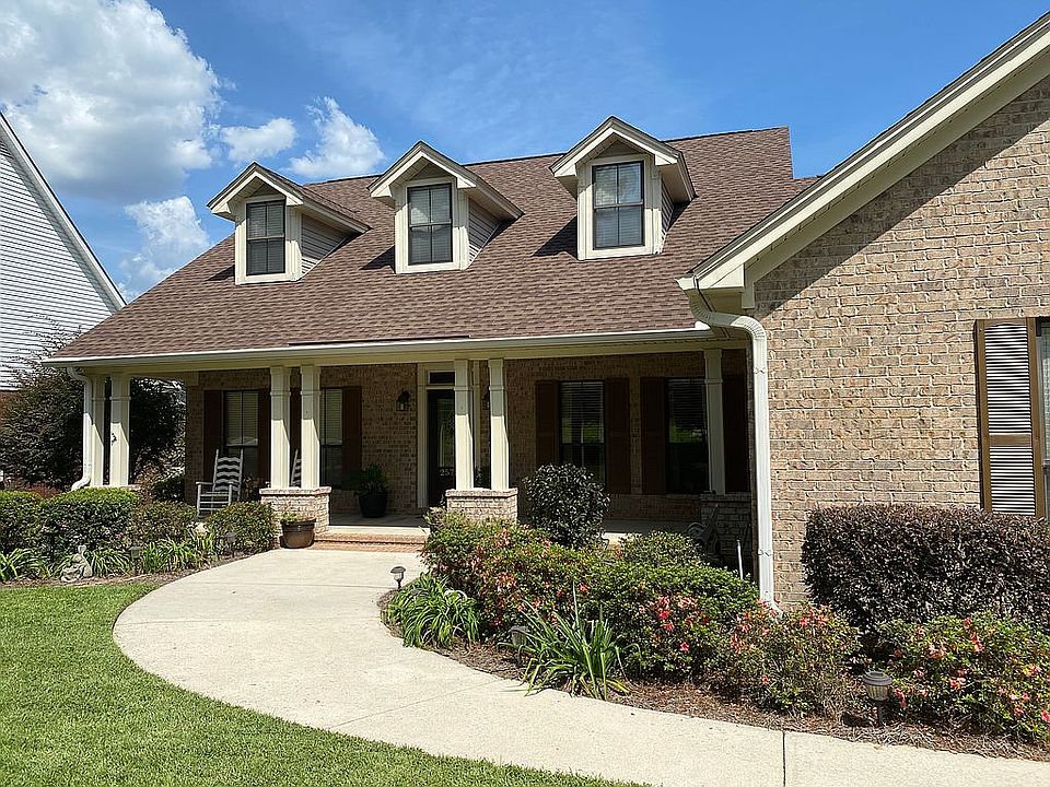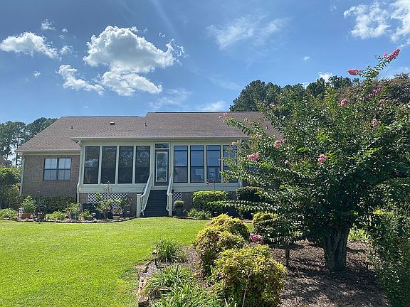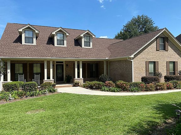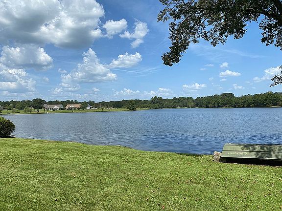 Bring your fishing poles and canoes! Beautiful custom built Southern cottage, 2431 square feet of living on 42 acre Lake Raynauga in Loxley, Alabama. Built in 2002 the house has 3 bedrooms and 2 ½ baths with a 14 foot ceiling in the living room, 10 foot ceilings in the foyer, dining room and kitchen and 9 foot ceilings in the rest of the house. The living room includes a remote controlled gas fireplace. Crown molding in all of the rooms (even the bathrooms), chair rail in the foyer, dining room, living room, hallway, kitchen and primary bedroom. Beaded board wainscoting in the foyer and kitchen. Wood floors in the foyer, dining, living room and hallway. Tile in bathrooms and kitchen, and carpet in the bedrooms. Garage floor is epoxy coated. Walk-in closet in primary bedroom is room size – 13’8” by 7’.