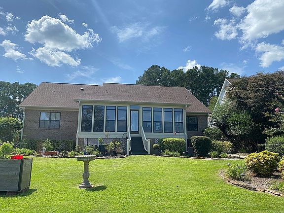 Relax on the large front porch or the 324 square foot sunroom overlooking the lake with 16 transomed windows with Coolaroo shades. The tiled sunroom was added in 2011 with beaded board walls and stained beaded board ceilings with crown and faux beams. A mini-split, remote controlled heating and cooling system was added in 2017. A Bronze fortified roof was added in 2019 as well as beautiful quartz countertops in kitchen and baths. The kitchen includes a large breakfast area and a 6 foot island as well as a subway tile backsplash.
