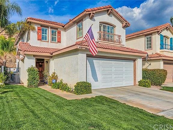 In the charming Verona neighborhood community of Stevenson Ranch you'll find this AMAZING 3 bedroom3 bath home with a large loft! Enter through this beautiful mediterranean front door to the formal living room and dining room flow from the front entry with high ceilings throughout. Remodeled kitchen with largeisland and quartz countertops opens up to the family room with a fireplace and built in entertainmentcabinet creating a cozy heart of the home. Gorgeous hardwood flooring throughout the downstairs and all bedrooms and loft are carpeted with highly upgraded plush quality. The master bedroom is light and bright overlooking the private back of the home with mountain view and includes a large walk in closet and remodeled bathroom with dual sinks and an oversized tiled shower. The beautiful pool, spa and SLIDE in the backyard makes for an entertainer's paradise! The shade covered patiois perfect for for eating and entertaining. It is super private and serene with the ultimate privacy of the mountains behind the home. In addition the home has under the stairs storage, directaccess 2 car garage, and interior upstairs laundry. Close to the top performing Stevenson Ranch Elementary and Richard Rioux Park with access to tennis, basketball, track, playgrounds and views with LOW HOA $30/month. Pride of ownership shines through on this beauty and you don't want to miss your chance to view it.