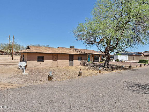 Enjoy the freedom of true country living on this spacious one-acre property in Buckeye—with no HOA. This well-maintained, brick-built home offers 3 bdrs, 2 baths, with 1,690 sq. ft. of comfortable living space. Inside, a cozy wood-burning fireplace adds warmth and charm to the inviting layout. The exterior is equally impressive, featuring solid brick construction throughout the exterior walls of all buildings, including a large detached recreation room—ideal for family parties, hobbies, entertaining, or additional storage. An RV hookup is already in place, making this property ready for your outdoor lifestyle.
