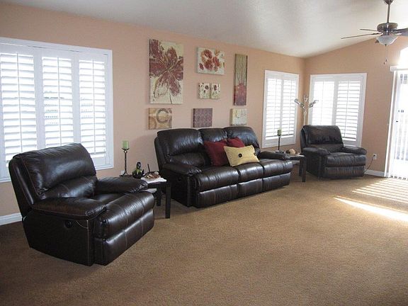 Seller will entertain offers between $435,000 - $445,000. This single level 3 bedroom, 2 bath home is located on a cul-de-sac in the desirable Crown Hills development in Alpine. Upgraded bathrooms, beautiful plantation shutters, vaulted ceilings, eat-in kitchen, large living room, cozy fireplace, nice fenced yard, covered patio, 2 car attached garage, central heat & air. Some of the many features Crown Hills deployment offers are walking paths, greenbelts, community pool, tennis courts, club house & gym. RV parking available.