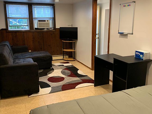 walk in basement one bedroom apartment with 1 bathroom in private house good location and supermarket nearby move in anytime all utility including summer time pay for 150 one time AC fee. Max 1 person . Owner pay for all utilities , Tenant only pay for three month AC fee when you are using AC.