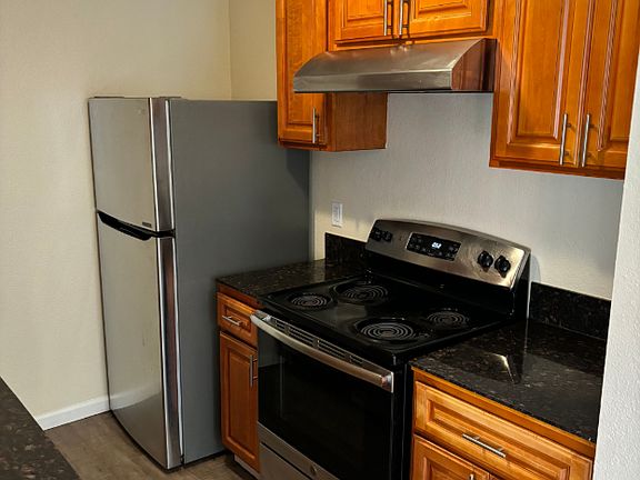 Spacious apartmentElegant wood cabinetsLuxurious granite kitchen countertops