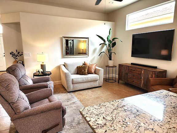 2023/2024 total update with beautiful finishes! Perfect 3 bed 2 bath townhome located minutes from Sky Mtn Golf, Sand Hollow Resort, and Zion Nat'l Park! Quiet well kept neighborhood. List of upgrades in photo section. Hiking, walking trails nearby. RV/storage area available. Close to shopping and medical facilities. And no busy street or tall buildings behind it. Covered patio.