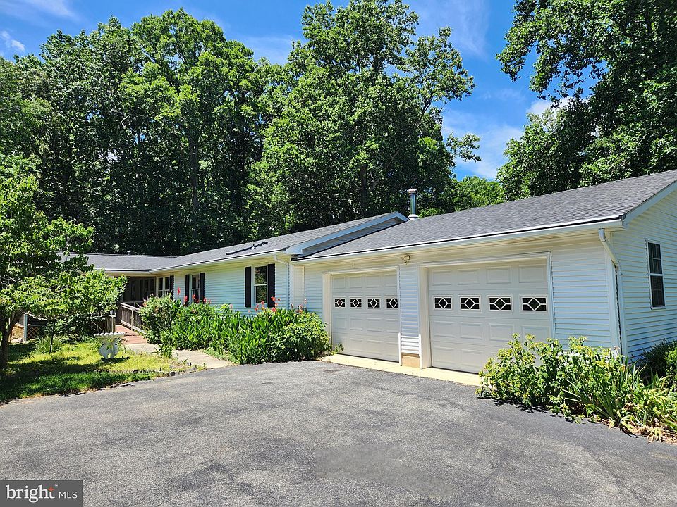 Remarkable rambler on 3.4 private acres with a brand new roof! Nestled among the trees and gardens, this 5-bedroom, 3-bath home has room for everyone with more than 2,700 square feet of living space. Vaulted ceilings, gleaming wood laminate and ceramic tile flooring, skylights and plenty of ceiling fans adorn the rooms of this one-level-living home. A big screened-in porch leads the way into a tiled foyer w/huge closet and spacious living room wired for surround sound. The updated kitchen features beautiful Cherry cabinets, stainless appliances (including a super quiet Bosch dishwasher), granite counters, pantry storage with pull-outs and recessed/pendant lighting. The kitchen opens to the dining area and large family room, both with Andersen sliding doors that lead out back. The primary bedroom, wired for sound, has a bay window for natural light, a big walk-in closet and an attached bath with jetted tub and double-head shower. 4 more bedrooms, all with ceiling fans, 2 hall baths, a dedicated home office and small bonus room complete the main floor layout. The laundry room has a utility sink and wood stove that heats a good portion of the home. Steps lead to an unfinished basement with French drain and tons of potential as an added bonus space! Enjoy the surrounding flora and fauna in a yard that blooms throughout the year and gather round the fire pit when the temperature dips. Keep the cars warm and dry in the 2-car garage with extra storage space. With no HOA, there is plenty of room for boats and campers, too. A new Architectural shingle roof installe in mid-May, a newer HVAC system, Andersen windows, gutter guards, a whole house water filter/softener and two sheds are details that make the living easy! On a nice day head down to the community water access park and paddle out to the Patuxent or take a hike at nearby Sotterly or Greenwell park. The location feels like country, but it's minutes from shopping, dining and main commuter routes. Don't miss your opportunity at spacious, one-level living in Hollywood. Request your showing today!
