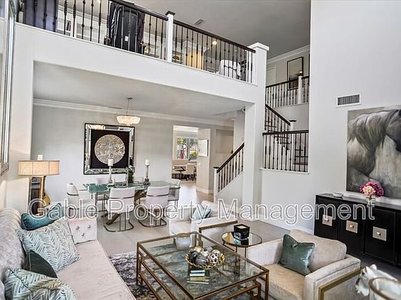 Welcome to this beautifully upgraded and meticulously maintained 5-bedroom, 3-bath home with a spacious loft, located in the highly desirable Stevenson Ranch community. With nearly 3,600 square feet of elegant living space, a 3-car garage, and energy-saving solar panels, this home is the perfect blend of luxury, comfort, and functionality. Step inside to find soaring ceilings and abundant natural light that enhance the home's open and airy ambiance. The freshly painted exterior, lush green landscaping, and wide driveway create stunning curb appeal. Inside, enjoy tile flooring, crown molding, custom paint, and wood shutters throughout. The formal dining room is highlighted by an elegant light fixture, ideal for entertaining.The remodeled kitchen is a chef's dreamfeaturing Viking stainless steel appliances, custom white cabinetry, upgraded countertops with a stylish backsplash, an island with built-in wine storage and fridge, a breakfast bar, large walk-in pantry, and recessed lighting. Adjacent is a spacious living room with built-in shelving, a cozy fireplace, and an inviting eating area. A downstairs bedroom with mirrored closet doors and a fully upgraded bathroomcomplete with a glass walk-in tile shower and designer vanityoffers comfort and privacy for guests or extended family. The laundry room includes a farmhouse sink, custom tile backsplash, and white cabinetry. Upstairs, a large loft with built-in shelving is perfect for a home office, media room, or play area. Four generously sized bedrooms offer ample storage, recessed lighting, and crown molding. The hallway bathroom features dual sinks, an upgraded vanity, and a beautifully tiled tub/shower with a glass enclosure. Retreat to the luxurious master suite with a double-door entry, decorative accent wall, crown molding, built-in cabinetry, and a sitting area. The spa-like master bath boasts a marble shower with gold fixtures, upgraded soaking tub with a built-in TV, dual vanities, and a custom walk-in closet with shelving. Additional features include wrought iron staircase railings, dual A/C units, and plenty of storage throughout. The tranquil backyard is perfect for entertaining, offering a built-in BBQ, covered patio, seating area, fruit trees, planter boxes, grassy area, and a shed. Located near award-winning schools, a large park, tennis courts, shopping, dining, and with easy freeway accessthis home is in one of the most sought-after neighborhoods in the area. Don't miss this rare opportunity to live in a truly exceptional Stevenson Ranch home!