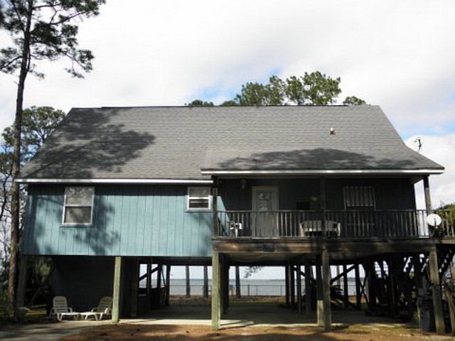 WATERFRONT DELIGHT! Attractive 4Bed/2Bath home with a great spacious open floor plan! Enjoy enchanted views from your private deck overlooking Wolf Bay! Huge fenced in lot with bulkhead,large pier & boat slip,outside fish cleaning station with sink,covered boat storage,large outside storage room/workshop,sprinkler system w/separate well. Awesome location near Marinas,Shopping & Dinning!