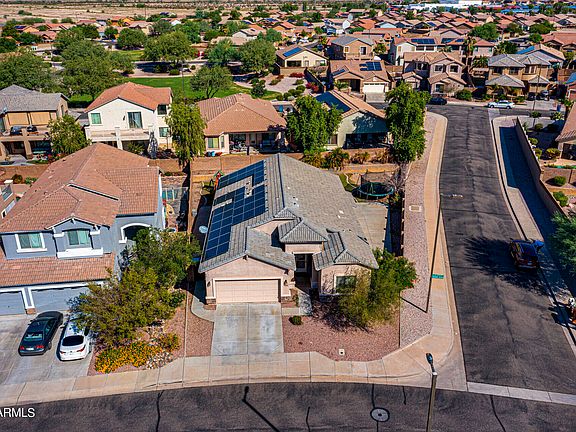 Wonderful 4 bedroom, 2 bath home! Great curb appeal, Oversized corner lot with mature trees, just across from the park! This North/South facing home has it all. Tile and all wood laminate flooring, 3 1/2 in baseboards, beautiful kitchen with reverse osmosis, center island with breakfast bar, pantry, split floor plan, great room, four good sized bedrooms, lovely master with dual sinks, separate shower and jetted tub, large walk in closet, stylish barn door in laundry room, water softener, extra slab for back yard patio, extended patio, huge pool size backyard with grass and palm trees. Tesla solar for energy efficiency!