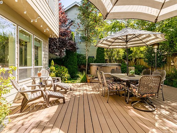 Custom built by Roundstone Construction. Spacious 4 bed w/loft offering play area, or home office space. High ceilings, 2-sided gas fireplace, granite, real hardwood floors, plumbed for easy vacuum, stainless steel appliances, custom window treatments, utility sink in laundry, gas heating & cooling, and tons of storage. Retreat in your very own backyard oasis. You won't find better seclusion with wrap around trees! Relax with a hot tub, water feature, and room for entertaining.