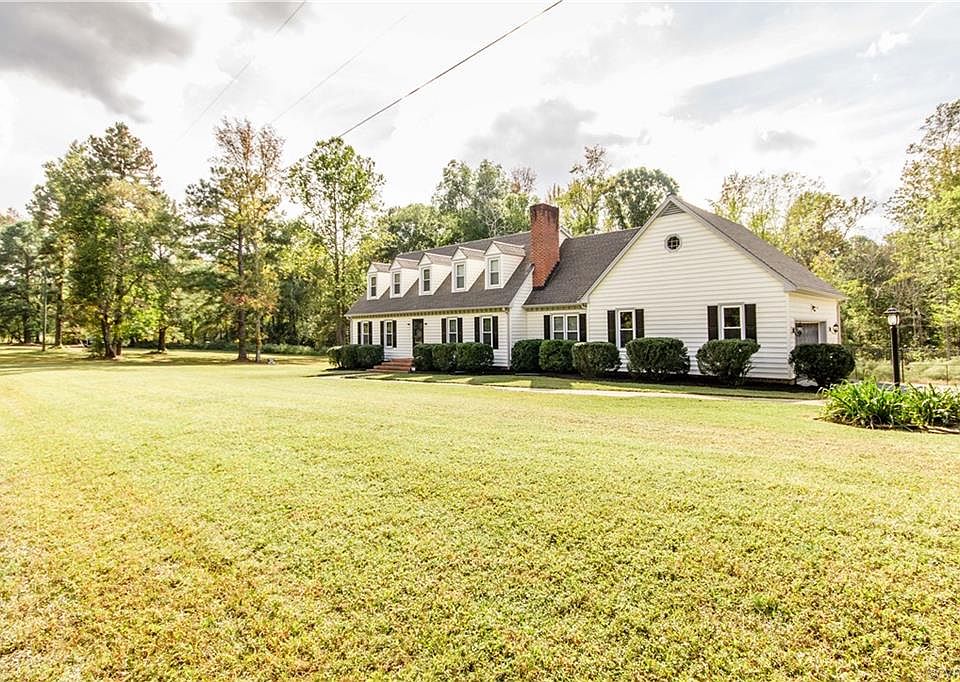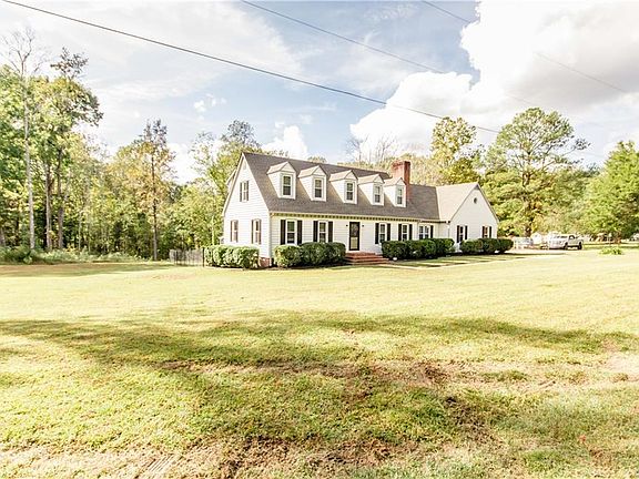 Spacious 2541 sq. ft. 2 story home, located in Prince George County on 5.5-acre lot. First floor amenities: Foyer entrance with hdwd flooring, kitchen with eat in dining area, quartz countertops and updated soft close cabinets, stainless-steel appliances, convection oven, dishwasher, and microwave. Eat-in dining area has new Pella sliding door that walks out onto concrete rear covered porch. Formal d/r and formal l/r, den with wood burning brick fireplace, built in cabinets and bookshelves, heart pine hdwd flooring. ½ bathroom remodeled, vanity w/quartz countertop, utility room with freestanding utility sink, washer/dryer to convey. 1 b/r downstairs shows off built in shelves, chair rail and heart pine hdwd flooring. 2nd floor amenities: large master b/r, huge walk in closet, beautifully remodeled master bathroom, with his and her vanities, ceramic tile shower and ceramic tile flooring. Also, 3rd, 4th and possibly 5th bedroom or playroom with easy access to walk in attic. Attached 2 car garage. Upgrades include a large 40 x 17 concrete patio in rear yard, black chain link fence, dual HVAC system.