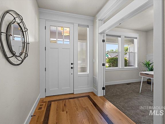 Experience Meridian living at its finest in this 2-story, 5-bedroom home at Red Feather Estates. Just steps from Kleiner Park and the Village at Meridian, it offers unparalleled convenience & amenities. The corner lot features mature landscaping, concrete curbing, an oversized patio, and a separate hot-tub pad. Recent updates include brand new paint, carpet, and refinished hardwood floors. The main level highlights a large office, half bath, mud room, & versatile 5th bedroom/playroom. The open kitchen boasts granite countertops, gas range, & stainless steel appliances. Upstairs, enjoy 4 bedrooms, 2 full baths, plus a potential entertainment space. The spacious master suite features a private bath with tile floors, soaker tub, walk-in shower, & granite countertops. Potential seller financing with 50% down at 5.5% interest, ask your agent! Don't miss this incredible Meridian home!