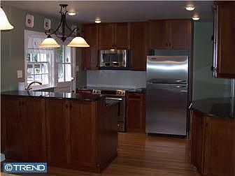 Beautiful well kept single home. Walk up the new concrete path to a covered front porch. Enter into a large living room w/built in book cases, original hardwood floors. The brand new cherry wood cabinets, granite countertops and top of the line Kitchenaid appliances are found in the kitchen. An open floor plan dining room with original built in china cabinet, new windows. Walk out door to a new side deck for privacy. Enter into the two garages with elec. door opener. The family room hosts the brand new powder room, carpet, bow window and real stone fireplace. The master bedroom consist of a large walk in closet, carpet, French door leads to a large sitting room with double door closet and full large bathroom. (Would be perfect for mother-in-law suite or 4th bedroom). Other bedrooms are large with nice size closets, orig. hard wood floors. New in 2006, central air, heater, 200 amp electrical service, attic insulation (can stand in attic).