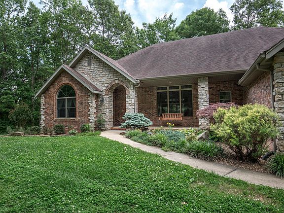 All brick/stone, walkout basement home on 3.06 acres! Offers 3 car attached garage and detached 3 car garage. Main level offers living room with fireplace w/surrounding built-ins, formal dining room, & laundry room w/sink. Kitchen has tile flooring, center island, kitchen bar, built in desk & plenty of cabinet space. Large master bedroom has master bath w/corner jetted tub, his & her vanities, walk-in shower & large walk-in closet. Basement has 2nd living area, recreation area, wet bar, and unfinished storage room. Lots of privacy to enjoy the deck off the main level with patio below. Nixa schools!