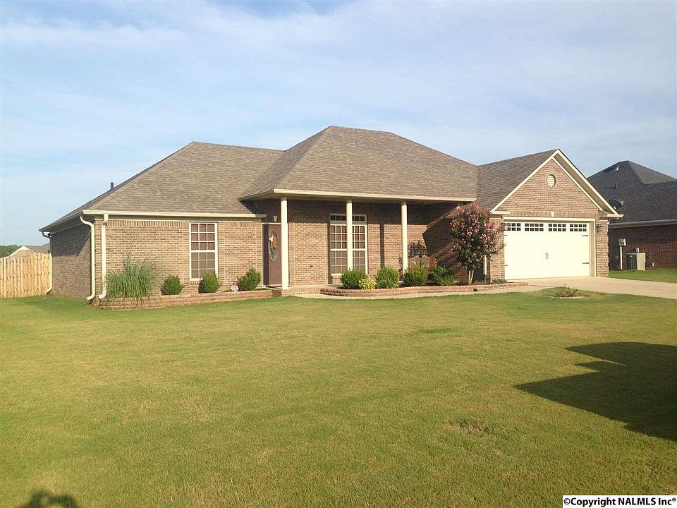 Call Troy Elmore @ 256-777-3710 or Jennifer Lovelady @ 256-679-6353 for your appt to see this wonderful home at CALDERA RIDGE IN fantastic East Limestone location. Full brick 3 BR open floorplan with hardwood in living areas & tile in wet areas. Foyer entry to 10ft ceiling, gas fireplace with mantle, transomed windows lighting the living room. Custom KIT with island overlook LR & DR opening to covered patio in privacy fenced backyard. Isolated master & bath with corner walk-in shower, dbl vanity & dbl walk-in closets. Well insulated, Renaii hot water system. Sodded yard. Contact us today!