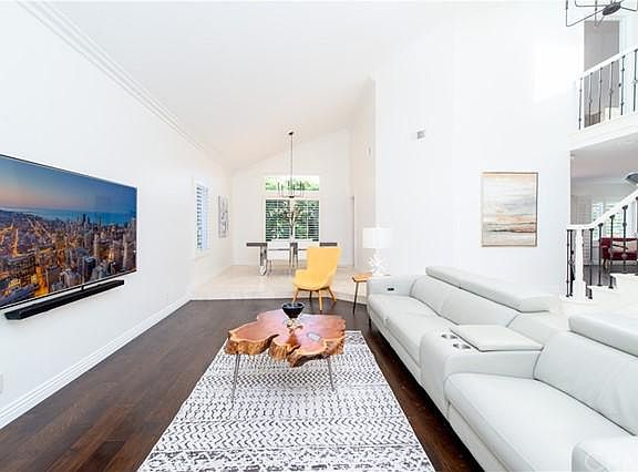Beautiful LIGHT and BRIGHT UPDATED SMART GREEN home with very private backyard is ready for you! One of the few homes with a THREE CAR GARAGE AND FOUR BEDROOMS in Laguna Niguel at this price. As you enter the front door you are greeted by soaring vaulted ceilings and an open floorplan with the living room open to the dining room. A skylight illuminates the front rooms adding to all the natural light flooding in through the many dual pane windows. The kitchen features white cabinets, new white artisan subway tile backsplash, and stainless steel appliances. The fireplace boasts brand new modern tiles floor to ceiling. The backyard is very private, with block walls and very tall trees surrounding your own little sanctuary, complete with water feature running down the slope. Solar powered lighting illuminates the water feature at night also! An above-ground hot tub completes the atmosphere, and if you choose, you can add a pool too. This home includes many SMART home features, including a garage door opener that connects to your phone! Other SMART items include a NEST thermostat, RING doorbell and security cameras. Additionally, the solar panels and artificial turf make it a GREEN home! The upstairs level hosts all four bedrooms, and the primary suite even enjoys mountain views! Artificial turf in the front and backyards reduces your water bill, and the new solar systems cut down your power bill. Your new home includes an EV charger, new electric panel and 2 solar power systems with battery backup. This exclusive neighborhood is gated and features a community pool, tennis, playground, volleyball, basketball and dog park. This home is close to Lifetime Fitness, shopping, Costco, Kaleidoscope for movies and dining, and quickly accessible to the freeway.
