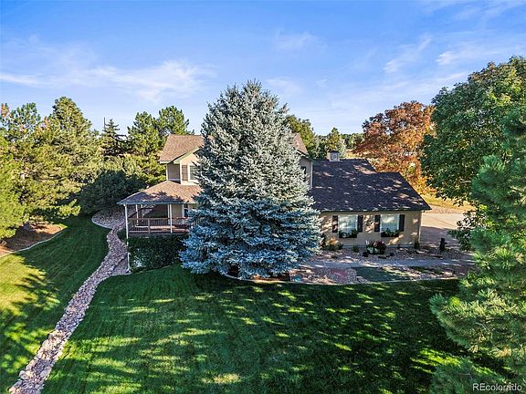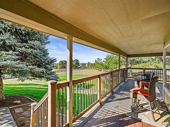 Absolutely gorgeous, updated home on 1.88 acres w/ 3 car attached garage PLUS 1200 sq ft outbuilding (w/ concrete, 220v electricity & oversized 14"x12" overhead door). This is one of the special homes that is meticulously maintained inside & out...things are just done right! Outdoor living around every corner including wrap around front deck, 24"x18" concrete patio w/ retractable awning in the backyard & 40"x8" covered concrete patio off of the outbuilding. Fully fenced & gated 1.88 gently rolling acres w/ mature landscaping & 25"x11" fenced garden area! Horses allowed! When you are done playing outside...step inside the fantastic, custom built, 2-story home offering over 3200 "finished" sq ft including 4 beds (w/ optional 5th) PLUS main floor study! The recently remodeled gourmet kitchen features beautiful new 42" custom Medallion cabinetry including pull-out drawers & rollout shelves, slab soap stone countertops, center island w/ butcher block counter finished in Expresso w/ accent cabinet color & overhanging pot rack. Kitchen is rounded out w/ Kitchenaid double oven, farmhouse sink & coffee bar w/ wine storage! Nearly the entire main floor offers inviting hardwood flooring & don't over-look the convenience of main floor laundry! The vaulted family room w/ gas log fireplace offers the perfect place to kick up one's feet, relax, & take in the big game! Upstairs features a generously sized primary bedroom w/ walk-in closet & remodeled 5-piece bathroom w/ soaking tub, shower with floor to ceiling tile, double sinks topped w/ granite & new cabinetry...stunning! 3 generously sized secondary bedrooms & 2 adding baths round out the 2nd floor! The finished walk-out basement offers flexibility in use w/ large great room, 3/4 bath & plenty of storage! Dog run! Cherry Creek Schools, quick E-470 HWY access & 15 min commute to Denver Tech Center, Inverness Business Park & Meridian Business Park. This home is just SPECIAL in so many ways....better hurry, or it'll be gone!