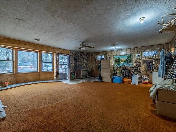 Inside, the home features charming details like exposed brick and rustic wood accents that add to the cabin-like atmosphere. The open floor plan allows for plenty of natural light to flood the space, creating a warm and welcoming environment for family and friends.