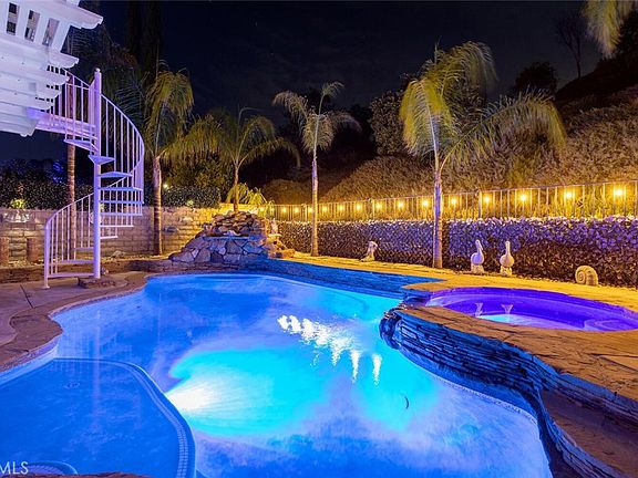 Exquisite 3 Bedroom + LOFT 2.5 Bath POOL Home in Stevenson Ranch! This lovely, detached residence is nestled on a tree lined street in the highly sought after Verona tract and is truly turn key! The inviting curb appeal with tropical palm trees, low maintenance turf and custom hardscape makes a lasting impression as you enter this beautiful home! Through the classic, covered porch entry you will find a beautiful formal living and dining room that opens to the spacious family room, wrap around staircase and chef‘s kitchen! The kitchen is complete with center island, granite counters and classic cabinetry as well as stainless steel appliances! The cozy family room is light and bright with glass mosaic tile adorned fireplace and looks out onto the sparkling swimming pool, waterfall and beautifully manicured hillside! Upstairs, you’ll find incredibly spacious loft with 3 flat screen TVs and views of the picturesque neighborhood! Two spacious secondary bedrooms share the hall bath complete with dual sinks and tub shower combo, the full-size washer and dryer are located on the second level for convenience adjacent to linen cabinetry storage! The primary suite is a private retreat of its own with access to a beautiful balcony and winding outdoor staircase that leads to the sparkling spa, swimming pool and built in BBQ! This is the perfect space for Entertaining or just to enjoy a quiet morning or sunset views! The primary suite has vaulted ceilings, a separate soaking tub, walk-in shower, dual vanities and a spacious walk-in closet! This home has been loved for many years and offers a two-car direct access garage with superfluous storage, seamless rain gutters and newer pool heater! This is a home you will cherish for years to come!