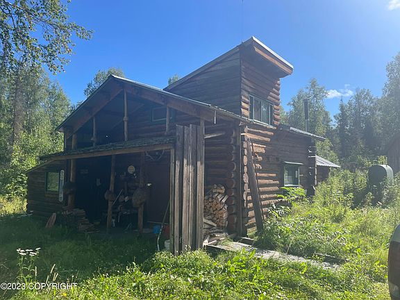 Drive to your Petersville recreational cabins! Borders state land that expands 3.8 million Acres! Expansive property featuring 2 log cabins and several outbuildings. Main cabin improved w/ living room addition in 2011. The main cabin has an indoor plumbed bathroom with shower and water. Property has well and septic, BTV size and condition for both. Great hunting, snow machining and ATV riding are