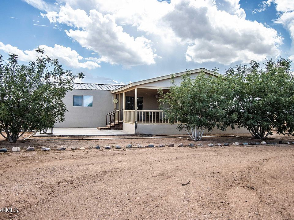 Hard to find 3 bed 2 bath home on 8.47 acres with horse and animal facilities. In addition there is a 1 bed 1 bath guest house (20X30ft) and private well. TRACTOR INCLUDED. 4 stalls and horse corral on east side of property which leads into a cattle pasture that goes into the roping arena (285X150ft). Pride of ownership is displayed throughout entire property and includes new AC (4 years old) and new roof (5 years old). All of this with gorgeous AZ sunsets, mountain views, and starry nights!