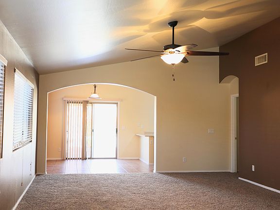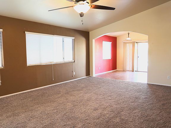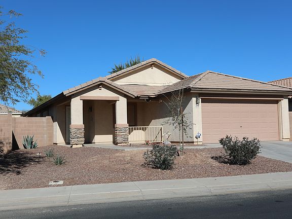This 4 bedroom / 2 bath beauty with an inviting front porch is located in Sunset Vista in Buckeye. Open floor plan with great room concept. Kitchen with smooth top range, built-in microwave, and refrigerator. Split master bedroom with walk-in closet, double sinks and private toilet room. New carpet in 2018 and fresh paint. Washer & dryer included! Desert landscape in the front and back. Covered patio plus additional pavers and large storage shed in the backyard! Great location with close proximity to parks and greenbelts. CFD has been paid!! Won't last long. Come check it out today!