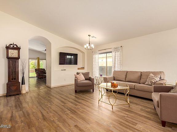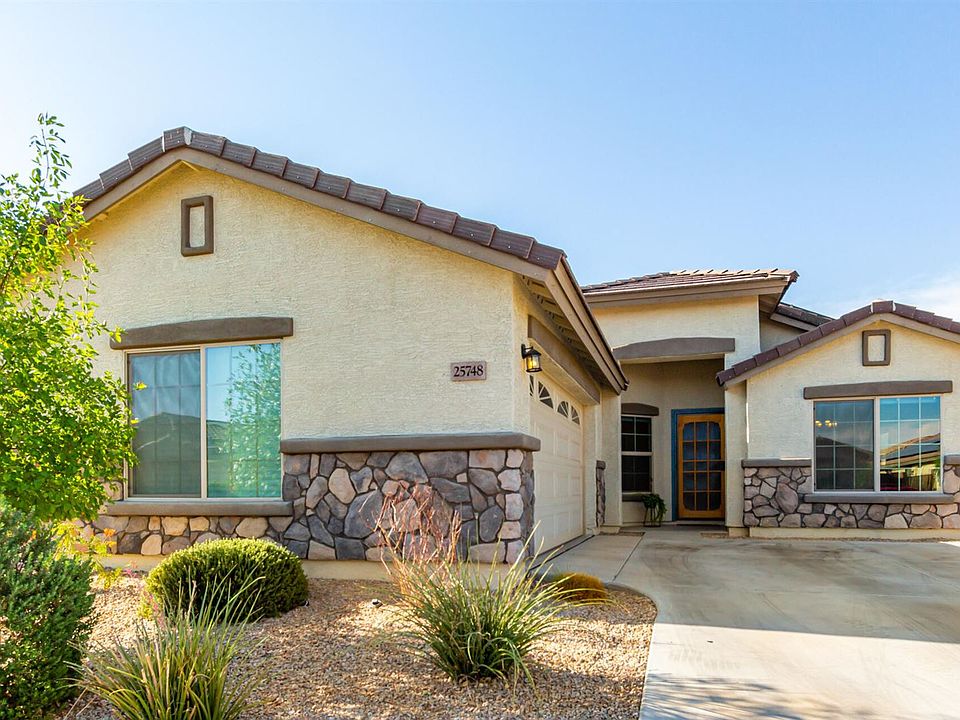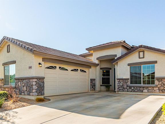This wonderful single-story home is only 3 years old and features wood-look vinyl plank floors, gray quartz counters, center island with breakfast bar, white cabinets topped with crown molding, and upgraded kitchen appliances including the fridge. Security system and water softener also convey. Open floorplan with vaulted ceilings and lots of natural light. 3 bedrooms, plus a den with doors that could easily be a 4th bedroom. The master suite bath includes a separate tub, step-in shower, dual sink, & walk-in closet. Enjoy your peace & serenity under the covered patio while viewing your beautifully landscaped backyard. Energy-efficient with a north/south exposure, Low-E windows, and the solar panels will save you thousands each year!! Don't miss this amazing home!