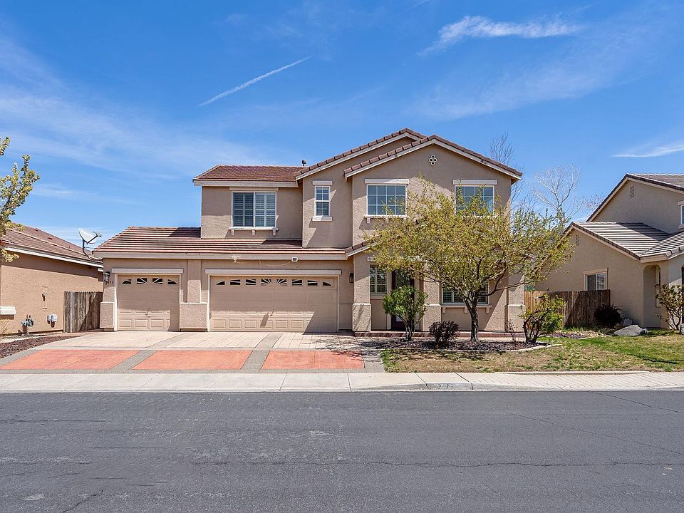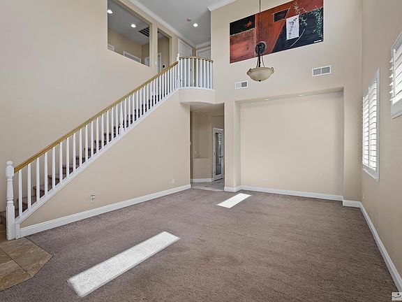 This stunning, former model home in Damonte Ranch has $100k+ in upgrades offering the perfect blend of comfort and style. Enjoy breathtaking views, white plantation shutters throughout, vaulted ceilings, formal/informal living and dining, beautiful glass door entry, and a private backyard. The kitchen has granite slab counters with stainless steel appliances, a built-in desk area, and tons of cabinet space plus pantry., The den on the main floor has decorative wainscoting and adjacent full bathroom - perfect as an office, mother-in-law area, or fifth bedroom as it has room to build in a closet. The master bedroom has two walk-in closets, dual granite vanities, marble floors, jetted garden tub, plus separate shower. Some added bonuses include brand new water heater, smart thermostat downstairs and upstairs, new vanity light fixtures, and automatic outdoor dusk dawn LED light fixtures.
