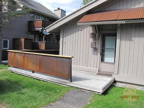 Nicely renovated unit. New solid surface counters/tile back splash in kitchen, appliances, wood cabinets, hardwood floors, carpeting in BR, vanity with stone counter, paint throughout! Big wrap around deck has great views of the Spanish Peaks and outside storage closets for skis & other toys. Enclosed pool, hot tub, sauna & laundry in common area. XC ski out your door & walk to golf, shopping, dining, & nature. Golf course with Gallatin River running through it is right behind Glacier. Turnkey furnished.