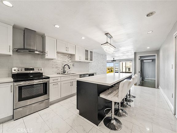 STUNNING PANORAMIC VIEWS of Palos Verdes, Catalina Island, and Long Beach Harbor! Step into this beautifully remodeled home featuring a modern, open-concept layout drenched in natural light from expansive windows and sliding doors. The kitchen is a chef’s dream with a striking design, featuring a large island with plenty of storage, custom quartz countertops, sleek white cabinets, stainless steel appliances, and a built-in wine cooler. Porcelain tile flows seamlessly through the kitchen and bathrooms, and a shimmering white brick wall adds a touch of elegance while connecting the kitchen to the spacious living area and two private balconies. Experience modern luxury with a state-of-the-art ductless AC and heating system, sleek electronic shades, and a sophisticated electronic locking system, seamlessly blending comfort, convenience, and style.