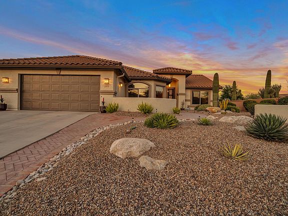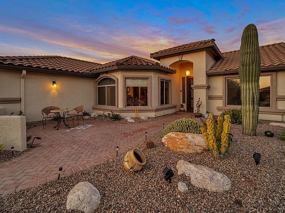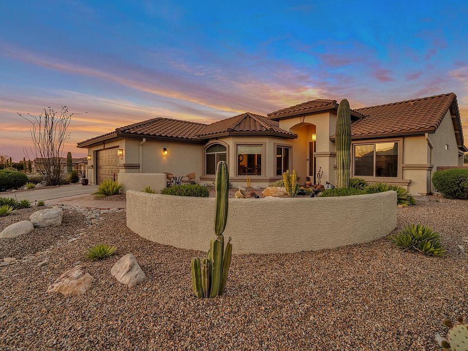 Step into a world of unforgettable moments. Situated within the exclusive residential development of Quail Creek and overlooking the sun-kissed Santa Rita Mountains. This prime corner lot location offers both tranquility and convenient access to the private amenities. Charming front courtyard & a grand wrought iron screen door welcomes you in. Completely remodeled, this popular Laredo floor plan has classic stone that will never go out of style. The den provides solitude and in the blink of an eye you can convert your hobby room to a guest bedroom retreat with the fold down Murphy bed. The outdoor living space has a beautiful enchanted mermaid by the water feature, built in BBQ, remote control roll down shades, and a beautifully textured walled fence. Dazzling epoxy coated garage floor.