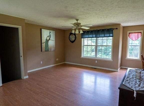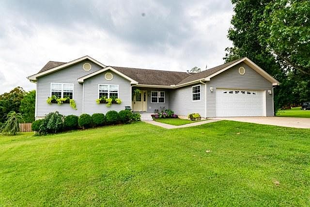 Large 4 BR 3 BA home on almost one acre sitting just outside city limits. Kitchen has an abundance of custom cabinets and granite counter-tops. All kitchen appliances stay. Master bedroom has private deck and jetted tub in master bathroom. Huge Man Cave in basement. Covered porches on front and rear of home. Gravel road leading to Echo Hills from big oak is being paved.