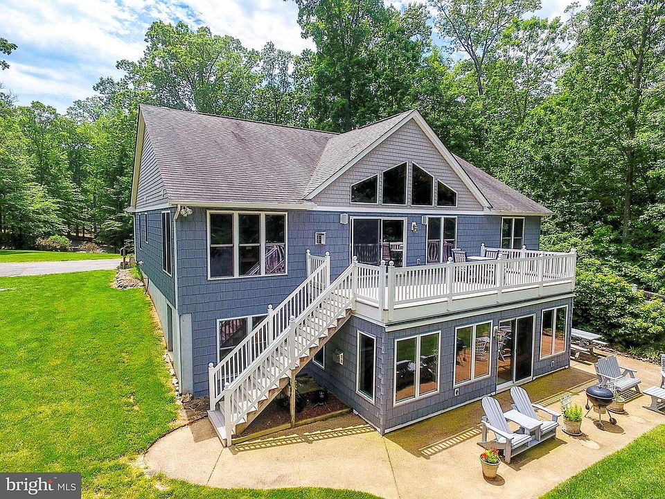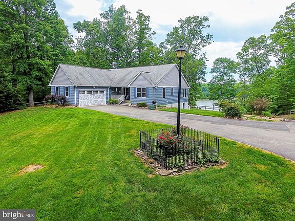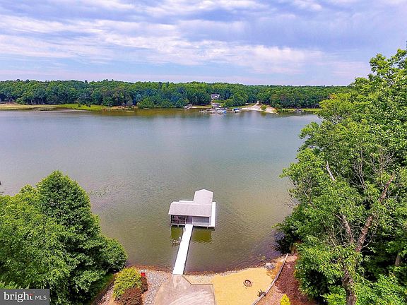 Pristine lake front 3,840 sq ft low maintenance home on the public side of the Lake Anna. It~s set in the middle of 1.75-acre secluded lot with unspoiled adjoining and lake views, naturally private waterfront, and surrounded by mature hardwood trees on a manicured landscape. The main floor is hardwood and ceramic tile with two master suites, half bathroom, spacious formal dining room, sitting room, great room with vaulted ceiling and propane fireplace, eat-in-kitchen, laundry room, and pantry. The walkout basement includes: two bedrooms with a full bathroom, large recreation room with wet bar and refrigerator, large workshop, exercising and storage area, and a 250 sq ft four-season sunroom with a Franklin propane stove that walks out into a spacious concrete patio. It has an attached two car garage with a paved driveway, separate storage shed, and 16KW Generac generator. Recent upgrades include high quality vinyl cedar shake shingles (2018), heating and cooling system (2016), tankless hot water heater (2016), 250 sq ft composite deck (2019), and dishwasher (2019), oven (2014) and refrigerator (2014). It includes a naturally private scenic shoreline (125 ft) with a watercraft navigable water depth. The dock consists of vinyl marine decking, covered boat lift, vinyl siding storage shed, screened in room, large sun deck, electricity, and potable water.
