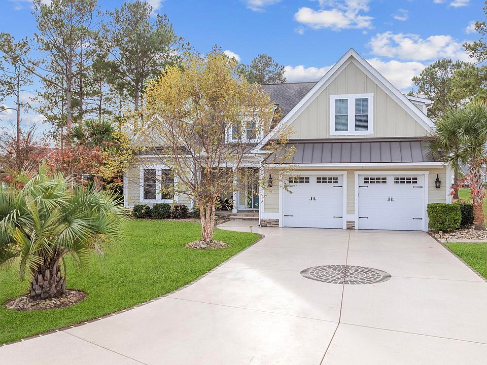 Step into luxury living in this exquisite 2-story waterfront home nestled within the prestigious, gated community of Waterbridge in Carolina Forest. As you enter the grand foyer, you will immediately notice the attention to detail with the extensive trim work throughout including crown molding & coffered ceilings. The expansive family room, adorned with dual overhead fans, opens seamlessly to a 20-foot-wide heated and cooled lanai. Through EZ Breeze windows, gaze upon the fenced backyard, with water views, a tranquil retreat. The open floor plan showcases a distinctive kitchen/dining area with granite countertops, a breakfast bar, and an extra-large pantry. Downstairs, discover an oversized entry closet, a half bath with a linen closet, and a custom wet bar with granite countertops. A combination office/laundry room adds practicality with granite counters, overhead cabinets, and a sink. The first-floor master suite boasts lake views, a tray ceiling, and two walk-in closets. The master bath indulges with his and hers sink areas, granite countertops, and a dual-head walk-in shower. Ascend the wide stairwell to an upstairs foyer leading to two spacious bedrooms, a full bath, and a walk-in storage closet. Access additional storage space above the oversized two-car garage, ripe for conversion into another bedroom and/or bath. Outside, a landscaped backyard features a large, paved patio with serene lake views. Enjoy Waterbridge amenities, including the largest private pool in South Carolina, boat storage, a boat ramp, tennis/pickleball courts, a weight/exercise room, volleyball court, and clubhouse with a kitchen. This impeccably appointed home is a must-see, located in the award-winning school district of Carolina Forest.