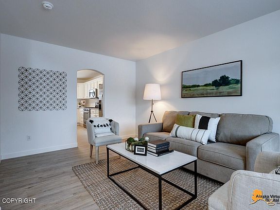 Modern updates capitalize on a tradt'l, open floor plan that boasts new paint, flooring, & contemporary lighting thru-out, Quartz counters, on-trend gold hardware & so much more! The sunny south-facing & fully-fenced yard is the perfect place for summer BBQ's, the oversized 3-car GAR will store all of your Alaskan gear, & the Southport location is convenient to shopping, trails and great schools!