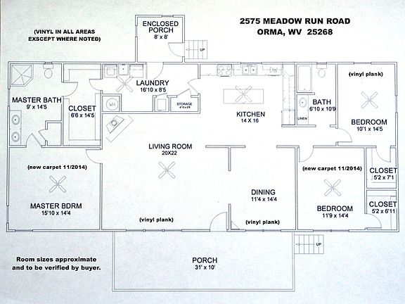 Comfortable home with open spaces, plenty of storage, lovely upgrades, beautifully maintained and clean as a whistle. All you need to do is set your furniture in place and start living and loving. Room sizes shown on floor plan picture. 3% commission paid to real estate agents with extra 1/2% for contract by end of January. Call owner at 304/655-8413. Reasonable offers will be considered. If you see it, you'll want it.