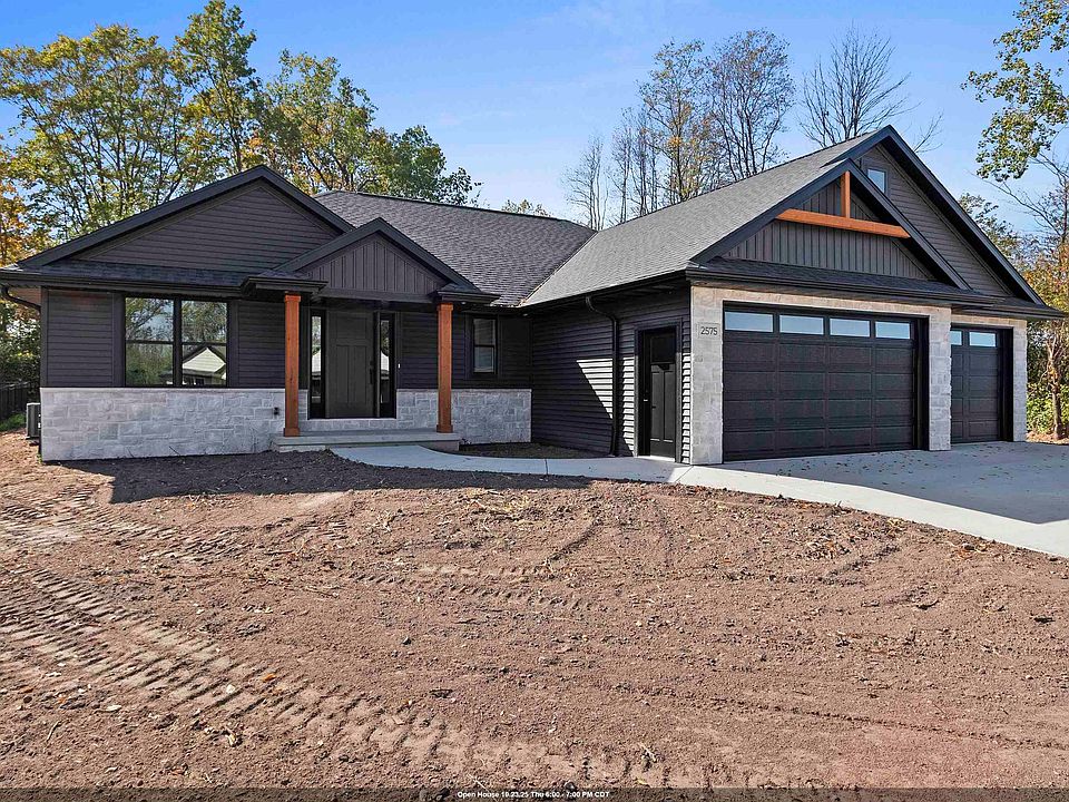 Step into this stunning new construction ranch home with an open-concept layout ideal for everyday living and entertaining. An inviting living room boasts a gas fireplace for cozy evenings opening to the kitchen with large island walk-in pantry and dining area. The primary suite is a retreat with its walk-in closet double vanity and a beautifully tiled shower. Convenient split bedroom layout with 2 additional bedrooms and full bath. Set on over a half acre outdoor living is made easy with a concrete patio with gas hook-up for grilling. Garage is insulated and drywalled. Basement stubbed for a bathroom and offers plenty of potential w/ an egress window ready for a future 4th bedroom. In the desirable Mystic Creek subdivision and West De Pere School District.