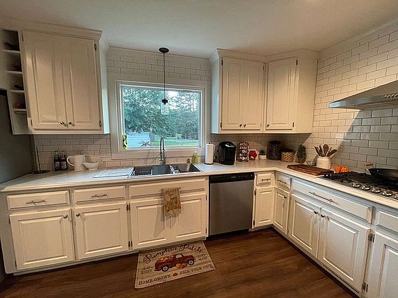 A charming 4 bd/3 ba home with a fully remodeled kitchen as well as many upgrades and additions. Vinyl plank flooring and tile will be found throughout. The dining area has a custom built storage bench and is open to the kitchen as well as the living room. A large, custom built, butcher block island separates the kitchen from the living space. The living room provides a gas log fireplace and large floor to ceiling windows. 2 large master suites occupy this home. One with a huge walk-through shower, freestanding tub and a large walk in closet. The home also boasts a beautiful mudroom with keyless/coded door to drop your things before entering the rest of the home. New windows throughout, tankless water heater, 2 outdoor storage buildings, a large fenced in yard, and a huge front porch that’s meant for nothing but relaxation.