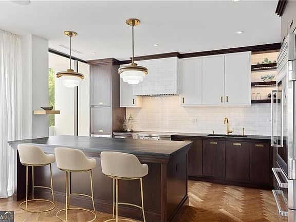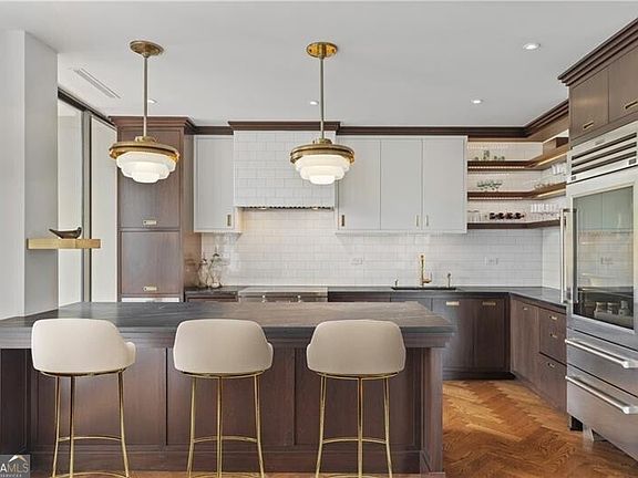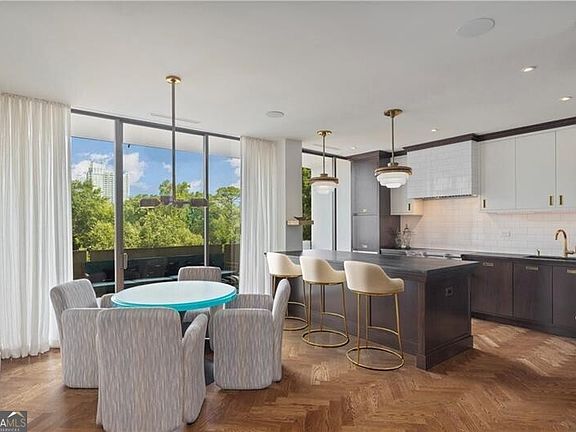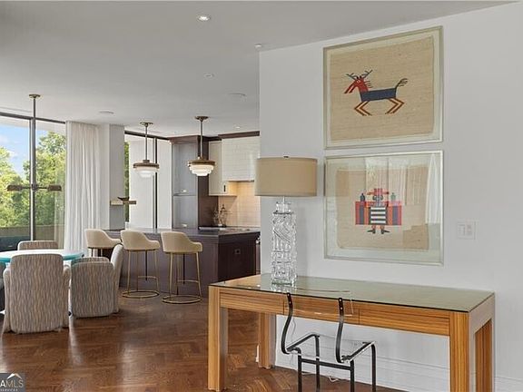 An extraordinary full-scale renovation has transformed this residence into a one-of-a-kind showplace in one of Buckhead's most iconic mid-century towers. Crafted with exacting attention to detail, the home showcases white oak herringbone floors, eight-foot solid-core doors, Lutron smart lighting, Waterworks fixtures, and designer lighting throughout. The kitchen pairs form and function with custom mahogany cabinetry, soapstone counters, Wolf induction range, Sub-Zero refrigerator, and a walk-in pantry with separate laundry. The primary suite features a bespoke mahogany dressing room and a spa-inspired bath with dual vanity, soaking tub, and a frameless thermostatic shower wrapped in book-matched marble slabs. Plaza Towers provides 24-hour concierge, on-site management, fitness center, guest suites, abundant visitor parking, a dog park, catering kitchen, and conference room. Recent building enhancements include modernized elevators, reimagined common areas, and beautifully refreshed lobbies and guest accommodations.