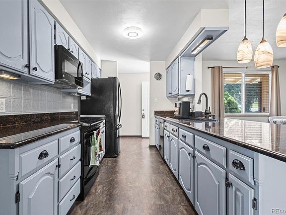 Welcome to your charming retreat in the heart of Applewood Knolls! This cozy ranch-style gem offers 2500 sq. ft. of inviting living space, including a fully finished walkout basement with a wet bar—perfect for entertaining or in-law style living. With 4 bedrooms and 3 baths, you'll find two primary suites—one conveniently located on the main floor and another downstairs for added privacy or guest accommodations. Inside, enjoy the warmth of two gas fireplaces—one in the basement and one in the dining room. The home features modern touches like granite countertops and hardwood floors throughout, and is move-in ready while also offering great potential for updates and personalization. The outdoor space is a true delight, featuring a covered patio, a fire pit for evening gatherings, a dog run, garden beds, and ample grassy area for play or relaxation. Plus, you'll love the convenience of the 2-car garage and extra parking space for an RV. Not only is this home beautifully maintained, but it also comes with many newer big-ticket items: a roof from 2017, furnace and AC replaced in 2022, radon mitigation system installed in 2017, water heater from 2017, new electrical panel in 2020, a fully remodeled basement bath in 2020, and a cleaned sewer line in 2023. Nestled in a desirable community just minutes from I-70, you'll have easy access to both Denver and the mountains, with Applewood Golf Course and Country Club, shopping, and dining options just a short drive away. Embrace the best of both city and outdoor living in this versatile and welcoming home!